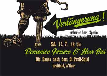 Wenn der FCW auf der Schuetzi auf den FC St. Pauli trifft, ist feiern angesagt. Wir oeffnen die Pforten bis spät und stellen mit Domenico Ferrero und Herr Bisi zwei waschechte FCW-Aficionados hinter die Plattenteller. Moege der Bessere gewinnen!